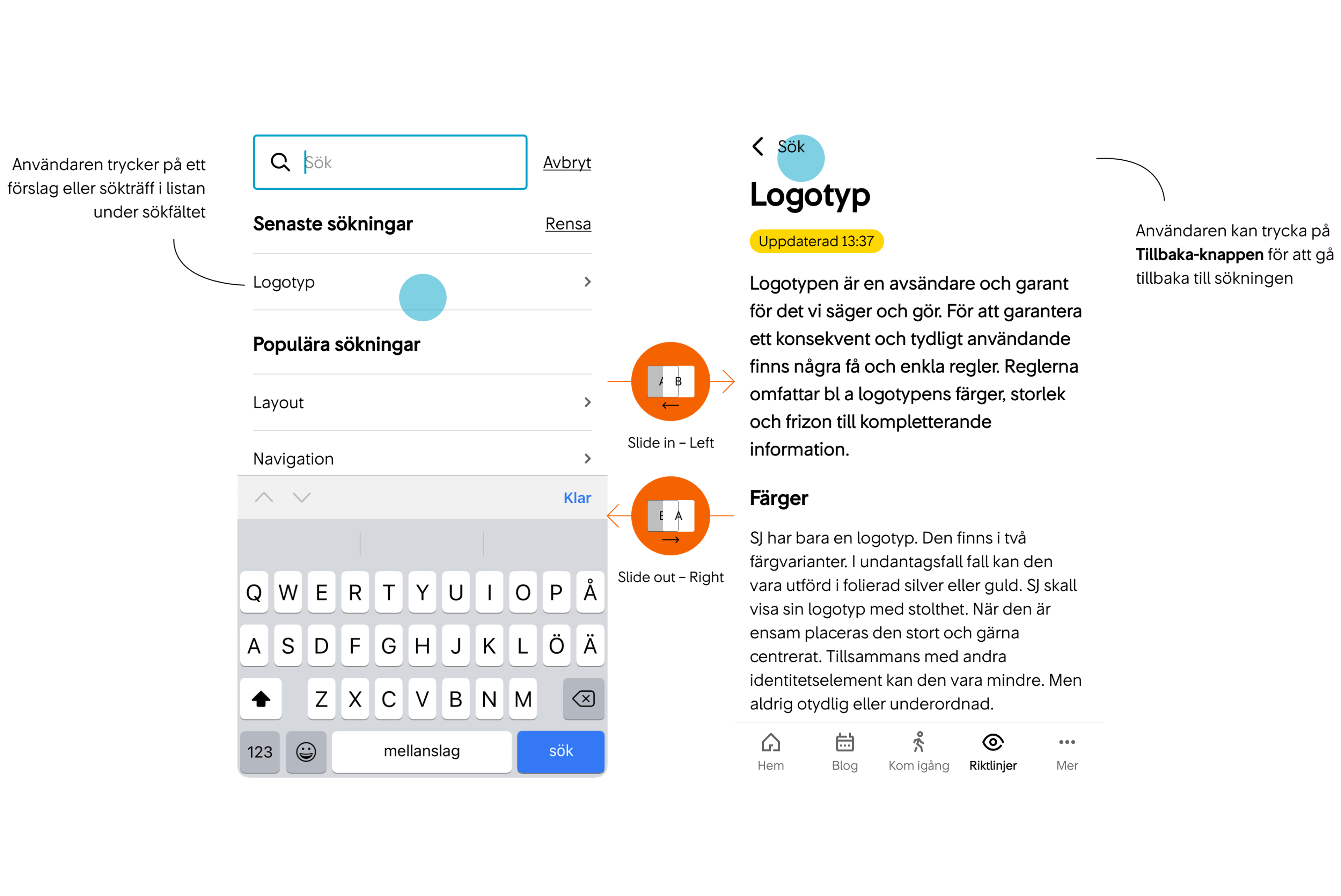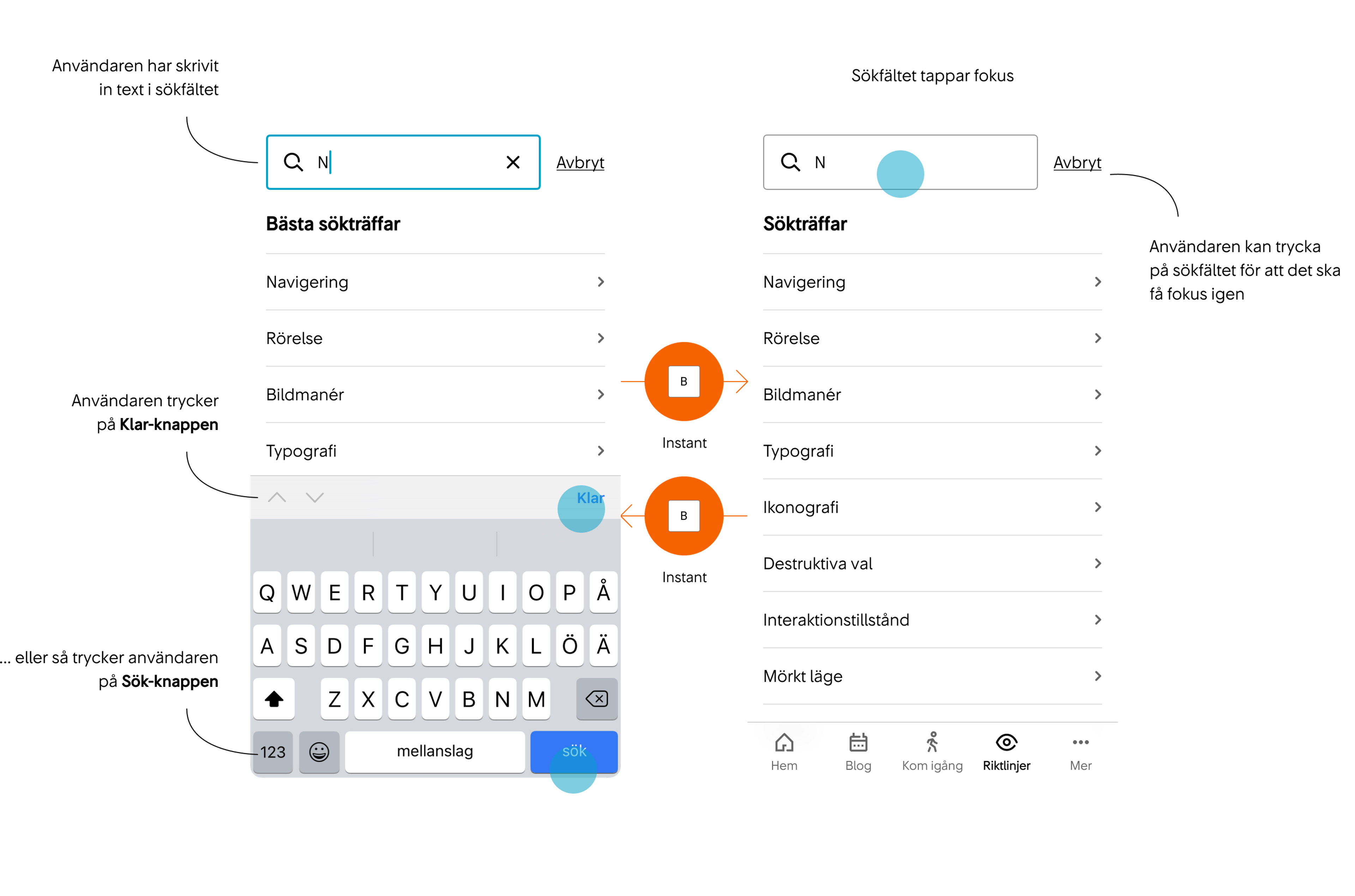 Här har vi samlat exempel på hur vi vill att sök ska upplevas i våra digitala produkter och tjänster.