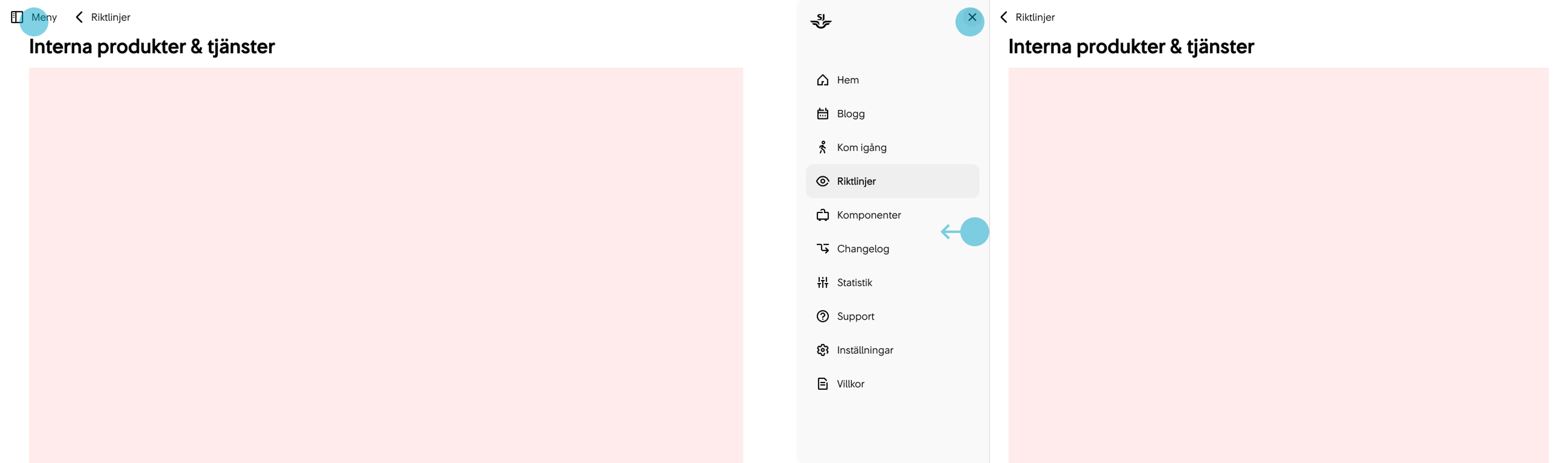 Rubriken i AppBar är dold för skärmläsare med aria-hidden eftersom det alltid kommer att finnas en annan likadan rubrik på sidan och vi vill bibehålla en korrekt rubrikstruktur.